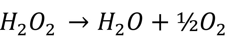5 cm 3 portions of partially decomposed 1 volume hydrogen peroxide. Hydrogen peroxide solution decomposes slowly at room temperature to water and oxygen. This equation allows us to calculate the time required for hydrogen peroxide decomposition on a metal surface.